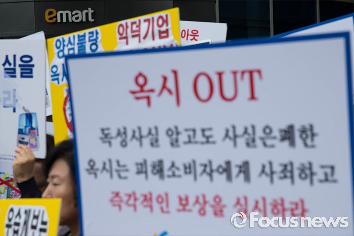 그러면서 "소비자의 생명과 신체에 위해를 가한 기업을 더 이상 막아내지 못하는 것은 큰 비극이다"며 "제20대 국회가 징벌적 손해배상 제도를 적극 도입하길 강력히 촉구하는 동시에 상징적 의미에서 1호 법안으로 상정하기를 희망한다"고 말했다.24일 오후 서울 용산구 이마트 용산역점 앞에서 소비자단체들이 옥시 가습기 살균제 피해에 대한 사과와 보상, 옥시제품 유통업체에서 철수를 촉구하며 기자간담회를 갖고 있다. 2016.05.24 이승배 기자