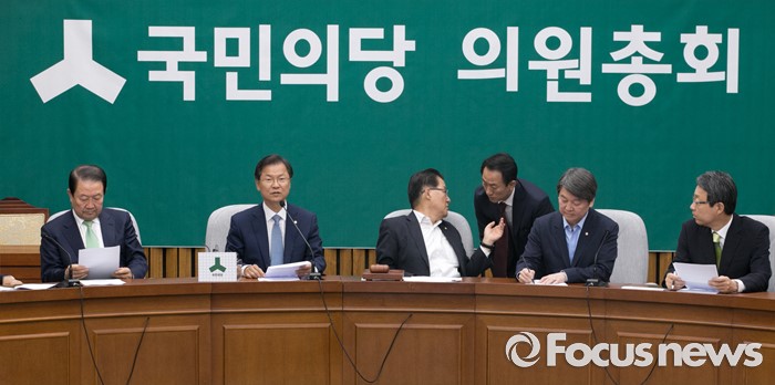 (서울=포커스뉴스) 20대 국회 임기가 시작된 30일 오전 서울 여의도 국회에서 열린 국민의당 의원총회에 참석한 천정배(왼쪽) 공동대표가 발언하고 있다.
