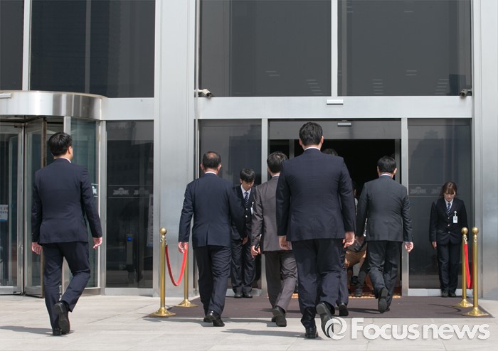 (서울=포커스뉴스) 20대 국회 임기가 시작된 30일 오전 서울 여의도 국회에서 의원들이 각 당 의원총회에 참석하기 위해 본청으로 들어서고 있다.
