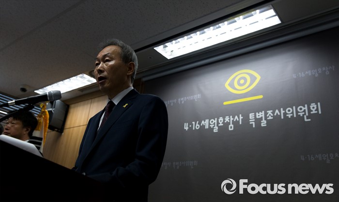 (서울=포커스뉴스) 30일 오후 서울 중구 4·16세월호참사 특별조사위원회에서 이석태 위원장이 기자회견을 하고 있다.
