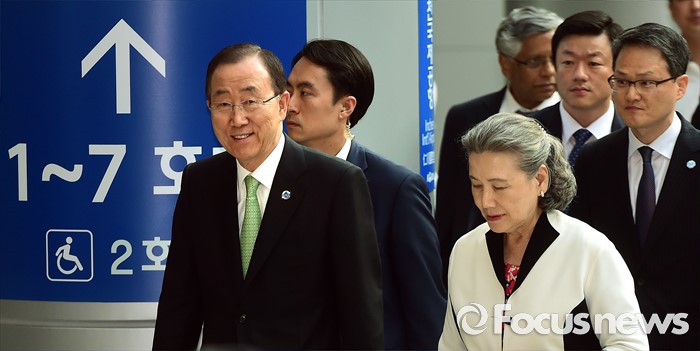 (인천공항=포커스뉴스) 방한일정을 마친 반기문 유엔 사무총장이 30일 오후 인천국제공항 KTX역에 내리고 있다.