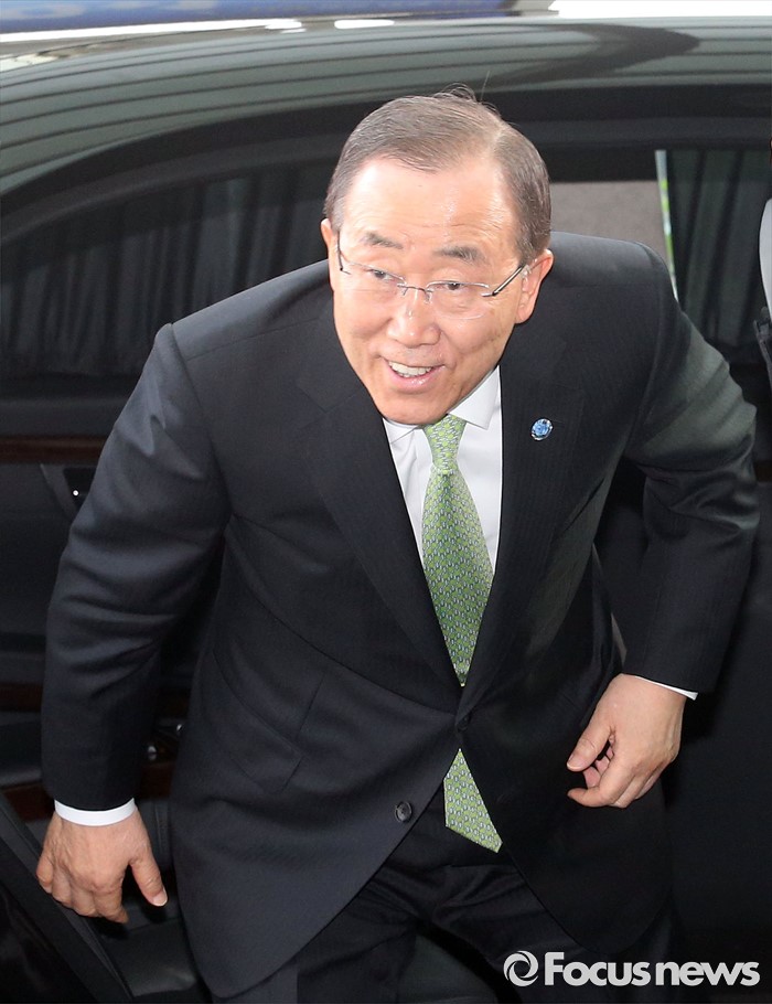 | △ 차량 내리는 반기문 유엔 사무총장 |