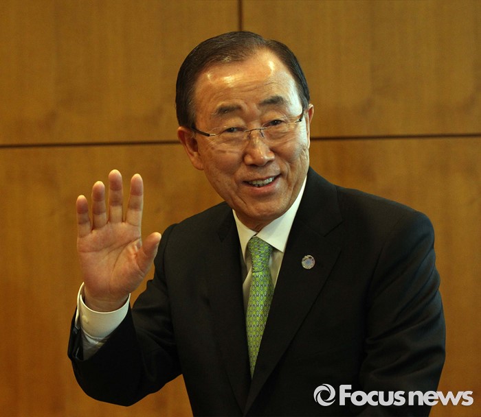 (인천공항=포커스뉴스) 방한일정을 마친 반기문 유엔 사무총장이 30일 오후 인천국제공항에서 출국에 앞서 취재진에 손을 들어 인사하고 있다.