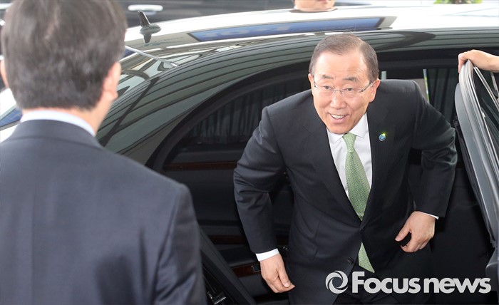 차량 내리는 반기문 유엔 사무총장