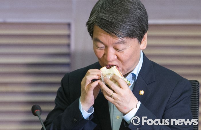 (서울=포커스뉴스) 31일 오전 서울 여의도 국회 의원회관에서 열린 국민의당 8차 정책역량강화 워크숍에 참석한 안철수 상임공동대표가 샌드위치를 먹고 있다.