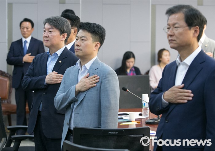 | △ 국민의례하는 안철수-천정배-임정욱 |