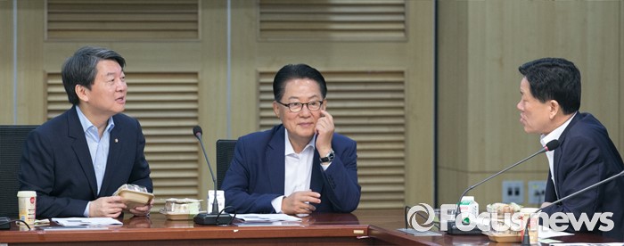 (서울=포커스뉴스) 31일 오전 서울 여의도 국회 의원회관에서 열린 국민의당 8차 정책역량강화 워크숍에 참석한 안철수(왼쪽부터) 상임공동대표, 박지원 원내대표, 주승용 의원이 대화하고 있다.