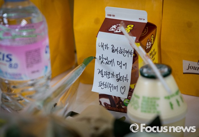 (서울=포커스뉴스) 31일 오전 서울 광진구 지하철 2호선 구의역에 마련된 스크린도어 사고 희생 청년 추모공간에 희생자를 위한 음료와 추모의 글이 놓여 있다.