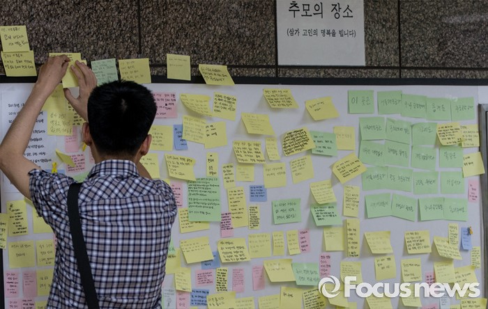 | △ 추모 쪽지 붙이는 시민 |
