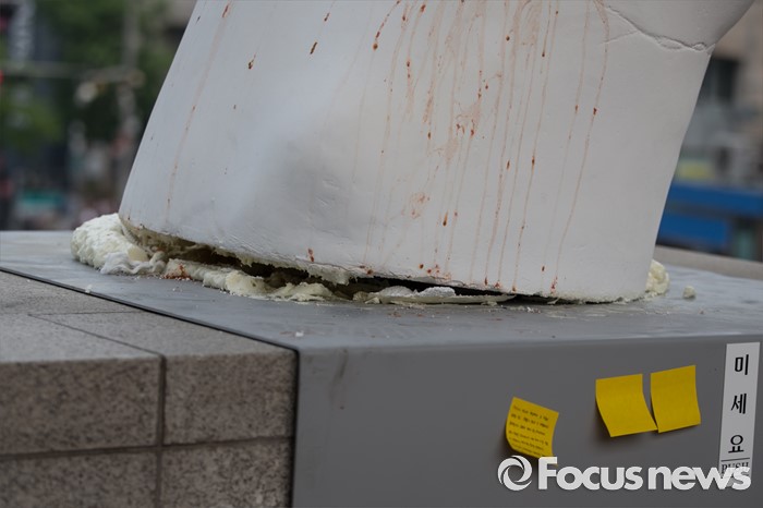 | △ 망가지고 있는 일베 상징물 조각상 |