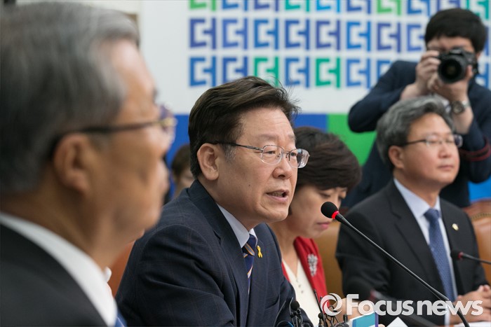 (서울=포커스뉴스) 이재명(왼쪽 두번째) 성남시장이 31일 오전 서울 여의도 국회에서 열린 지방재정 개편 관련 김종인 더불어민주당 비대위 대표 등과의 면담에 참석해 발언하고 있다.