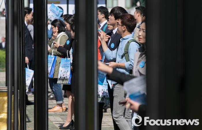 고용노동부 나영돈 청년여성고용정책관은 "오는 7월부터 시범사업으로 실시되는 '청년 내일채움공제'는 중소기업에 신규 취업한 청년들의 장기근속 유도와 자산형성에 기여해 미래기반 마련에 도움이 될 것으로 기대한다"며 "갈수록 심각해지는 청년일자리 문제 해결을 위해 많은 기업과 청년들이 참여해 달라"고 당부했다.(서울=포커스뉴스) 지난해 10월 2일 오전 서울 여의도 국회 잔디마당에서 열린 대한민국 청년 20만+ 창조 일자리 박람회를 찾은 참석자들이 채용공고게시대를 살펴보고 있다. 박동욱 기자