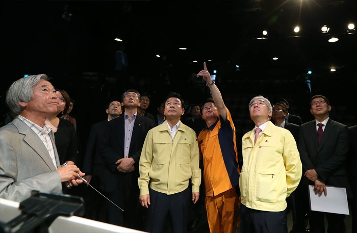자세한 내용은 공연장안전지원센터 누리집(www.stagesafety.or.kr)에서 확인할 수 있다.26일 서울 대학로에 위치한 소극장에서 문화체육관광부와 국민안전처가 서울시·공연장안전지원센터·한국소극장협회 등 민관 합동으로 공연장 안전관리 실태에 대해 현장점검을 실시했다. 이날 김종덕 문체부 장관, 박인용 국민안전처 장관이 소극장 안전관리 실태를 점검하고 있다. <사진제공=문화체육관광부>2016.05.26 포커스포토