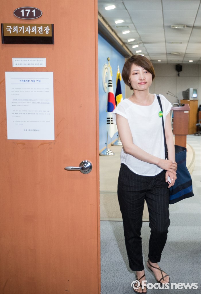 (서울=포커스뉴스) 31일 오후 서울 여의도 국회에서 열린 야3당과 백남기 대책위 공동 기자회견을 마친 백남기 씨의 딸 백도라지 씨가 회견장을 나서고 있다. 이날은 경찰의 직사 물대포 진압으로 지난해 11월14일 민중총궐기에서 쓰러진 백남기 농민이 사경을 헤맨 지 200일째다.