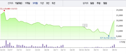 이에 5시에 열리는 3300억원 규모의 채무재조정도 무난히 가결될 것으로 보고 있다.주가흐름<사진출처=네이버 캡쳐>