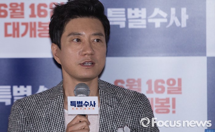 (서울=포커스뉴스) 31일 오후 서울 성동구 왕십리 CGV에서 열린 영화 ' 특별수사 : 사형수의 편지' 언론시사회에 참석한 배우 김명민이 취재진의 질문에 답하고 있다.