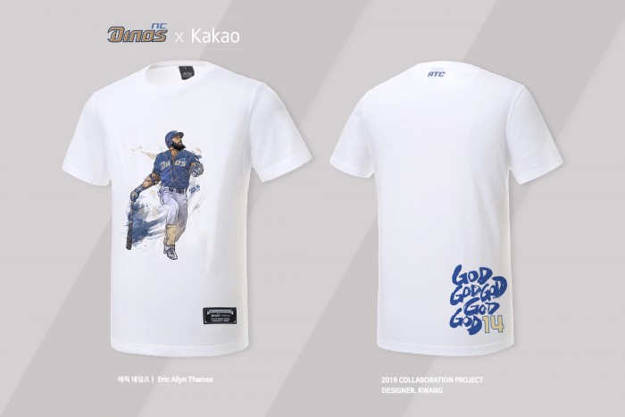 NC는 카카오의 모바일 주문생산플랫폼 '메이커스 위드 카카오'에서 31일 테임즈 티셔츠 2종을 시작으로 선수별로 1주일씩 총 3주간 주문 생산을 진행한다. 가격은 1장 당 3만9000원. 주문인원이 200명을 넘어야 생산에 들어간다.