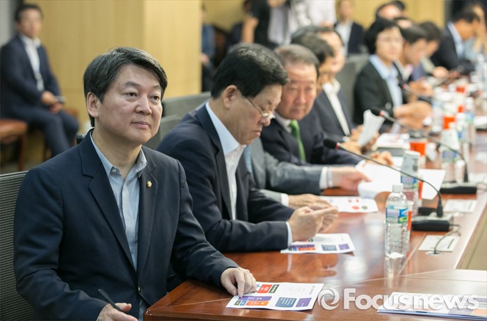 (서울=포커스뉴스) 안철수(왼쪽 첫번째) 국민의당 상임공동대표 등 의원들이 1일 오전 서울 여의도 국회 의원회관에서 열린 9차 정책역량강화 워크숍에 참석해 이기정 미양교등학교 교사의 발언을 듣고 있다.