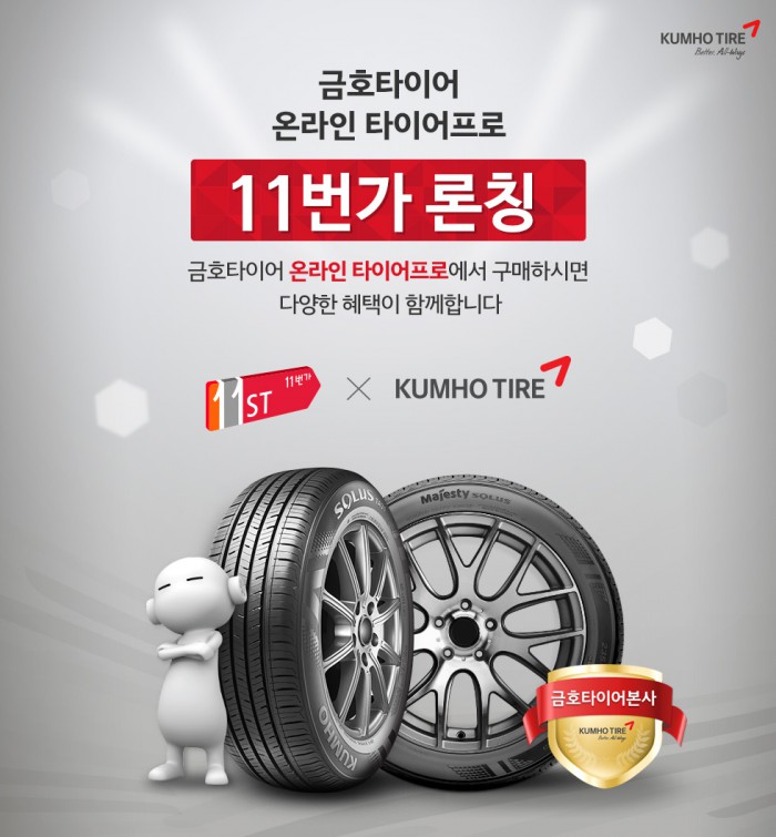 (서울=포커스뉴스) 금호타이어의 유통점인 ‘타이어프로’가 1일 국내 3대 오픈마켓(Open Market) 중 하나인 ‘11번가’에 공식 입점해 인터넷 판매를 개시한다.