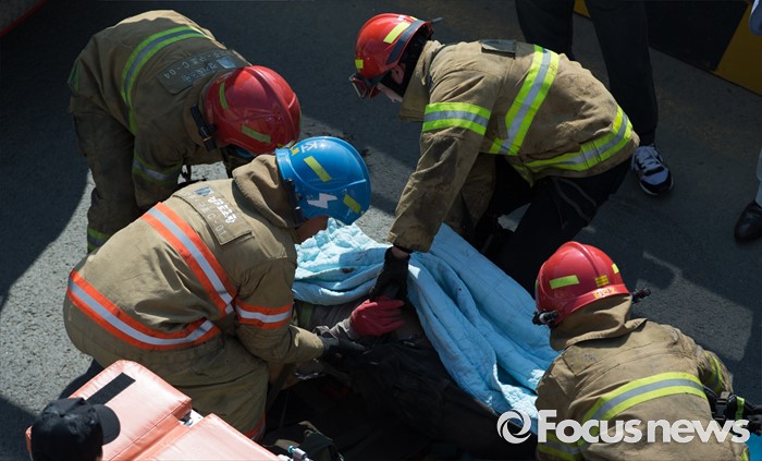 (남양주=포커스뉴스) 1일 오전 7시 20분께 경기 남양주시 진전읍 금곡리 진접석 지하철 공사현장이 붕괴되는 사고가 발생해 소방대원들이 구조작업을 하고 있다.