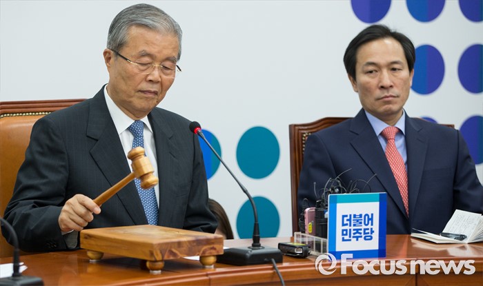 (서울=포커스뉴스) 김종인 더불어민주당 비상대책위원회 대표가 1일 오전 서울 여의도 국회에서 열린 비상대책위원회의에서 의사봉을 두드리고 있다.
