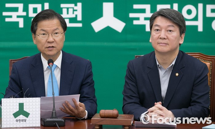 (서울=포커스뉴스) 1일 오전 서울 여의도 국회에서 열린 국민의당 최고위원회의에 참석한 천정배 공동대표가 모두발언을 하고 있다. 오른쪽은 안철수 상임공동대표.