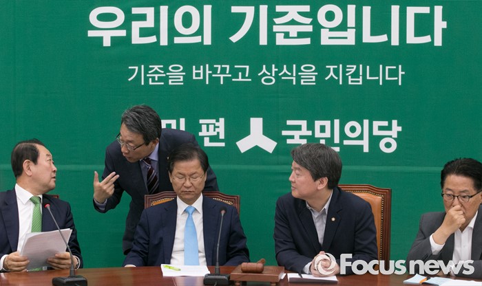 (서울=포커스뉴스) 1일 오전 서울 여의도 국회에서 열린 국민의당 최고위원회의에 참석한 의원들이 대화하고 있다. 왼쪽부터 박주선 최고위원, 김성식 정책위의장, 천정배 공동대표, 안철수 상임공동대표, 박지원 원내대표.