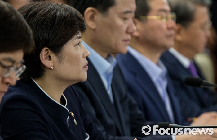 (서울=포커스뉴스) 1일 오전 서울 종로구 정부서울청사에서 열린 법질서관계장관회의에 강은희(왼쪽 두번째) 여상가족부 장관이 모두발언을 경청하고 있다.