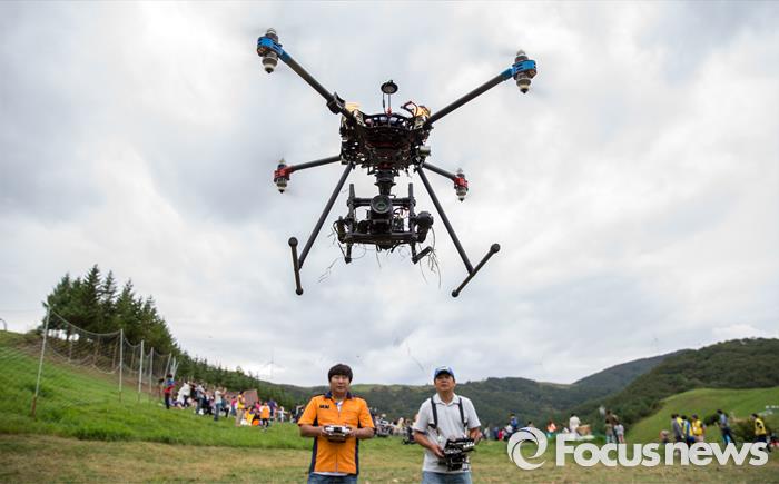 향후 한전은 자율비행 드론 현장실증을 통해 개선사항을 도출해 보완하고, 내년 하반기 부터는 전국 사업소에 확대 적용하여 설비진단의 과학화 및 효율화를 추진할 계획이다. 또 사물인터넷(IoT) 등의 첨단기술을 전력설비 운영분야에 적용해 국민들에게 고품질의 전기를 저렴하고 안정적으로 공급할 수 있는 미래 기술기반을 마련한다.12일 오후 강원 평창군 대관령 삼양목장에서 열린 '2015 대한민국 드론의 날'에서 드론이 비행을 하고 있다. 2015.09.12 강진형 기자