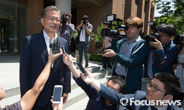 | △ 취재진 둘러싸인 문재인 |