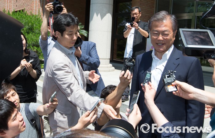 (청주=포커스뉴스) 문재인 더불어민주당 전 대표가 1일 오전 충북 청주 청원구 천주교 청주교구를 방문, 장봉훈 주교와 면담을 마치고 청주교구를 나서며 취재진의 질문에 답변하고 있다.