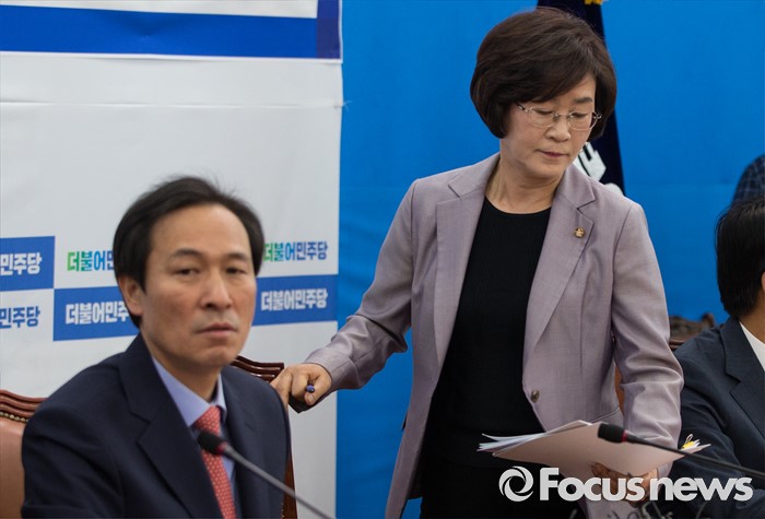 (서울=포커스뉴스) 김상희(오른쪽) 더불어민주당 서민 주거 TF 단장이 1일 오전 국회 원내대표실에서 열린 서민주거TF 발족식에 참석하고 있다.