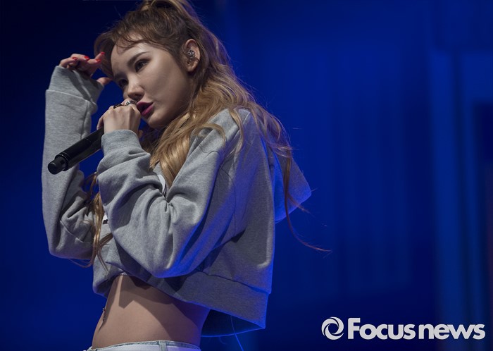 (서울=포커스뉴스) 1일 오전 서울 강남구 일지아트홀에서 열린 걸그룹 EXID의 정규 1집앨범 'STREET' 발표 쇼케이스에 참석한 멤버 LE가 신곡무대를 선보이고 있다.