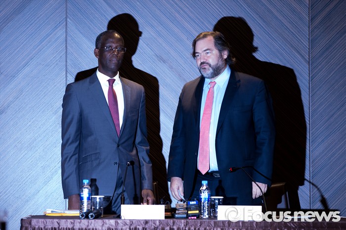 (서울=포커스뉴스) 1일 오후 서울 중구 플라자호텔에서 열린 '유엔인권이사회, 기업과인권 한국조사단 기자회견'에서 단테 페스케(오른쪽) 의장과 마이클 아도 의원이 한국 기업 인권 조사 결과 발표에 앞서 사진촬영을 하고 있다.