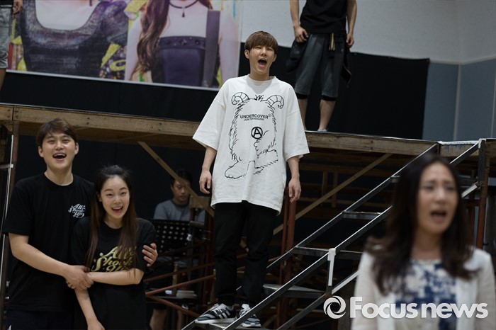 (서울=포커스뉴스) 인피니트 성규가 1일 오후 서울 종로구 아리온 연습실에서 열린 뮤지컬 '올슉업' 연습공개 현장에서 연기를 선보이고 있다.