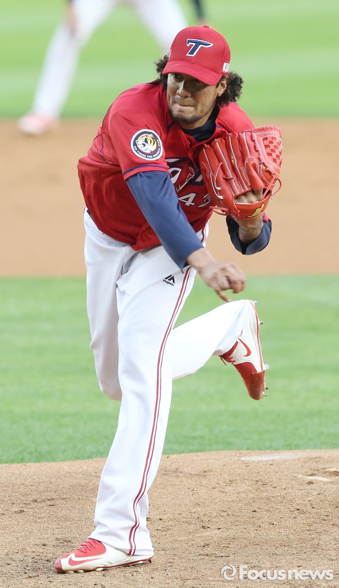 (서울=포커스뉴스) 1일 서울 잠실구장에서 열린 2016 프로야구 KIA-LG 경기에서 1회말 KIA 선발투수 헥터가 투구하고 있다.