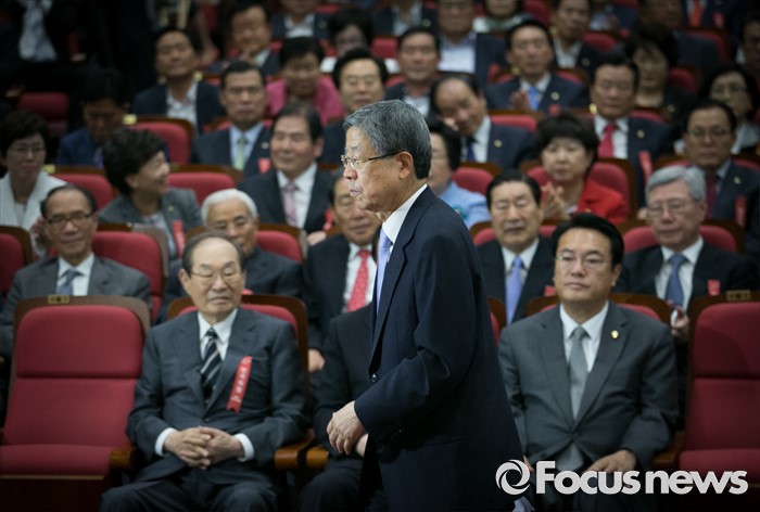 (서울=포커스뉴스) 2일 오후 서울 여의도 국회 의원회관에서 열린 새누리당 4차 전국위원회에서 공식 선출된 김희옥 혁신비대위원장이 인사말을 위해 단상으로 향하고 있다.