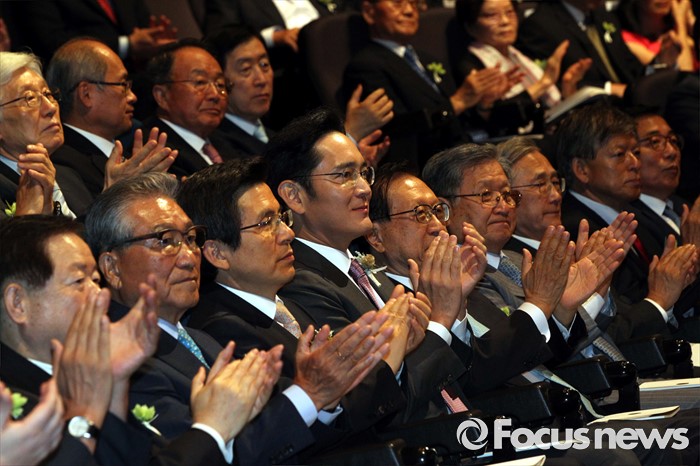 (서울=포커스뉴스) 1일 오후 서울 중구 호암아트홀에서 열린 제26회 호암상 시상식에 참석한 황교안(앞줄 왼쪽 세번째부터) 국무총리와 이재용 삼성전자 부회장이 박수치고 있다.