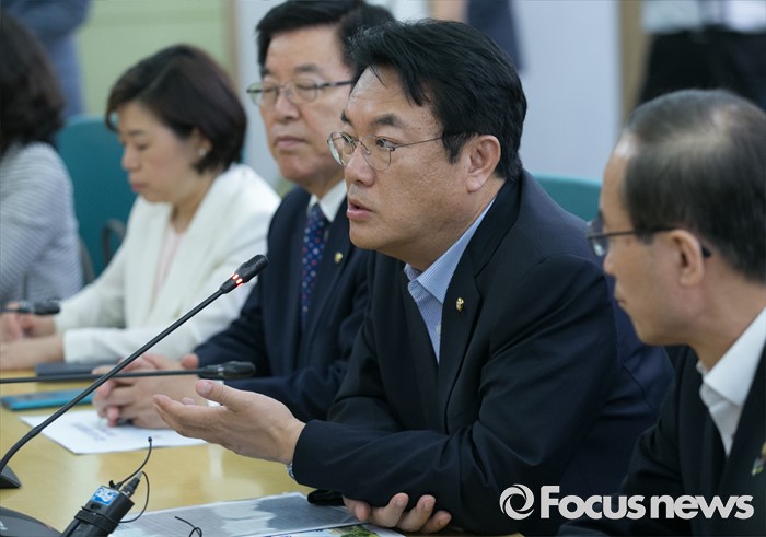 (서울=포커스뉴스) 미세먼지 대책과 관련해 현장 방문에 나선 정진석(오른쪽 두번째) 새누리당 원내대표가 1일 오후 서울 동작구 기상청 종합상황실을 방문해 모두발언을 하고 있다.