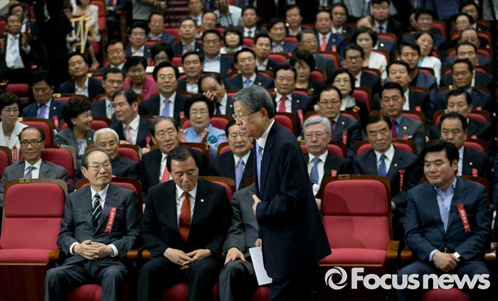 (서울=포커스뉴스) 2일 오후 서울 여의도 국회 의원회관에서 열린 새누리당 4차 전국위원회에서 공식 선출된 김희옥 혁신비대위원장이 인사말을 위해 단상으로 향하고 있다.