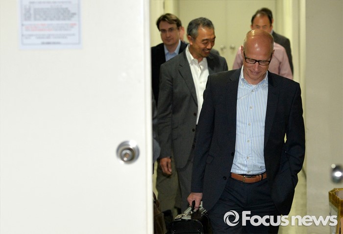 (서울=포커스뉴스) 2일 오후 서울 종로구 현대상선 본사에서 열린'G6' 해운동맹 회원사 협렵방안 회의에 참석한 제3 글로벌 해운동맹 디 얼라이언스 소속 해외 선사 관계자들이 회의를 마친 뒤 주차장으로 향하고 있다.