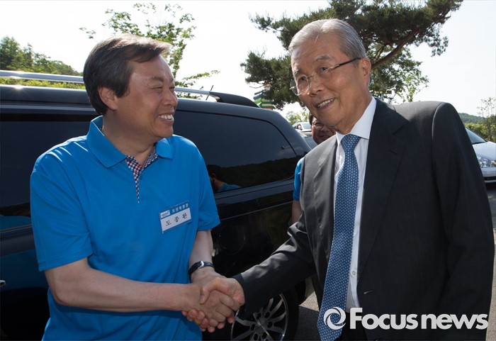 (괴산=포커스뉴스) 김종인 더불어민주당 비대위 대표가 1일 오후 충북 괴산 성불산자연휴양림에서 열린 충북도당 핵심당직자 워크숍에 참석, 도종환 도당위원장과 악수를 하고 있다.