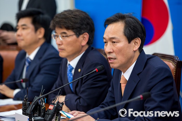 (서울=포커스뉴스) 우상호 더불어민주당 원내대표가 2일 오전 서울 여의도 국회에서 열린 정책조정회의에 참석해 모두발언 하고 있다.