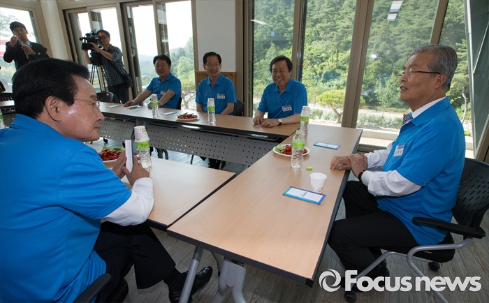 (괴산=포커스뉴스) 김종인 더불어민주당 비대위 대표가 1일 오후 충북 괴산 성불산자연휴양림에서 열린 충북도당 핵심당직자 워크숍에 참석, 총선 출마자 간담회에서 대화를 하고 있다.
