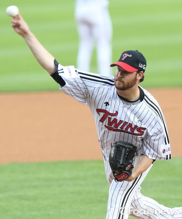 (서울=포커스뉴스) 1일 서울 잠실구장에서 열린 2016 프로야구 KIA-LG 경기에서 1회초 LG 선발투수 코프랜드가 투구하고 있다.
