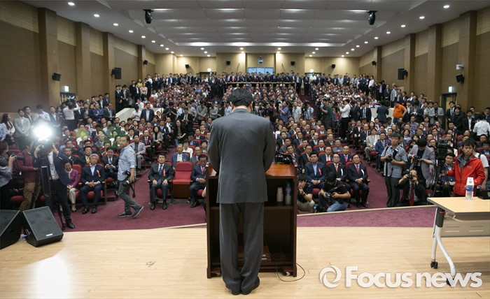 (서울=포커스뉴스) 2일 오후 서울 여의도 국회 의원회관에서 열린 새누리당 4차 전국위원회에 참석한 정진석 원내대표가 인사말을 하고 있다.