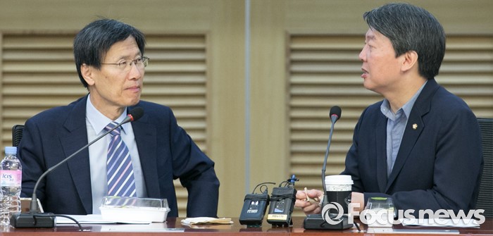 | △ 대화하는 안철수 대표-윤영관 전 장관 |