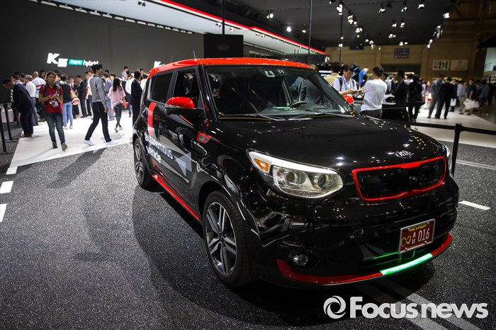 (부산=포커스뉴스) 2일 오전 부산 해운대구에 위치한 벡스코에서 열린 '2016 부산국제모터쇼'에 자율주행이 가능한 기아 '쏘울'이 전시되어 있다.