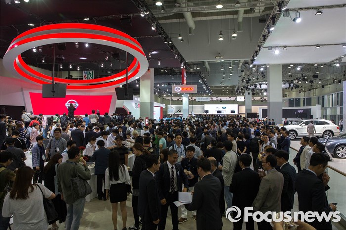 (부산=포커스뉴스) 2일 오전 부산 해운대구에 위치한 벡스코에서 열린 '2016 부산국제모터쇼'에서 관계자 및 시민들이 행사를 관람하고 있다.