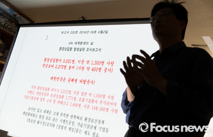 (서울=포커스뉴스) 2일 오전 서울 종로구 환경보건시민센터에서 최예용 환경보건시민센터 소장이 세계환경의 날 기념 환경성질환 피해실태조사 보고서를 발표하고 있다.